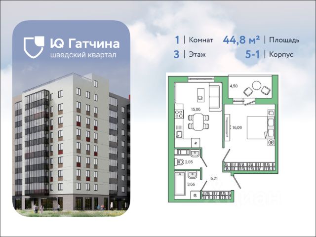 IQ Гатчина- жилой квартал комфорт -класса, в историческом пригороде Санкт-Петербурга городе Гатчина. Концепцию создания комплекса разрабатывало шведское архитектурное бюро Йоханнеса Товатта с европейским подходом к каждой детали. Транспортная доступность: 20 мин. на авто до КАД, 30 мин. до метро "Московская" и не больше часа до центра Санкт-Петербурга. В шаговой доступности от комплекса парки Гатчинского дворца, остановки общественного транспорта, а также ж/д станция "Татьянино". О проекте: комплекс имеет переменную высотность от 5-12 этажей, яркие фасады и безбарьерную среду. Места общего пользования выполнены по дизайн проекту, с современными бесшумными лифтами, колясочными и витражным остеклением. Все комнаты правильной квадратной формы, увеличенные окна с двойными стеклопакетами, высота потолков от 2,7 м2 до 3,02 м2 на последних этажах. Инфраструктура: на первых этажах комплекса работают супермаркеты, аптеки, салоны красоты и уютные кафе, прямо напротив жилого комплекса - крупный торговый центр. В квартале уже открыла свои двери современная школа на 825 мест и детский сад на 120 мест, а также в ближайшее время запланировано строительство второго детского сада. Благоустройство: квартал полностью имеет закрытые дворы, в которых каждый чувствует себя максимально безопасно, работает круглосуточное видеонаблюдение, доступ только для жителей и их гостей по системе IP домофония, концепция "дворы без машин", зеленые аллеи, ландшафтное озеленение, во дворах установлены современные игровые комплексы, спортивные площадки. Для владельцев животных предусмотрены лапамойки. Уникальный образовательный кластер: Гатчинский государственный университет (ГГУ), Государственный институт экономики, финансов, права и технологий, "Гатчинский педагогический колледж имени К.Д. Ушинского", ЧОУ "Первая академическая гимназия", МБОУ СОШ No12 "Центр образования", Детские сады No26 и No52 Первый дома комплекса уже сданы и заселены. В комплексе так же работает "Живи клуб", который объединяет жителей общими идеями и хобби. Квартира от застройщика, новостройка комфорт-класса в Гатчине.