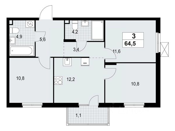 • ✅ Минимальная площадь: 21,8 м²