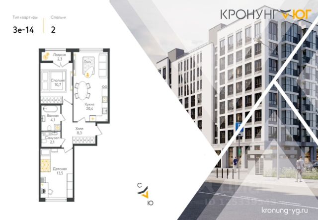 Кронунг ЮГ- современный жилой комплекс комфорт-класса на берегу реки Дудергофки. Невысокая этажность, современная архитектура.