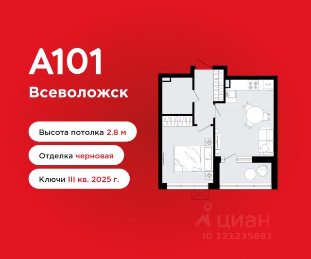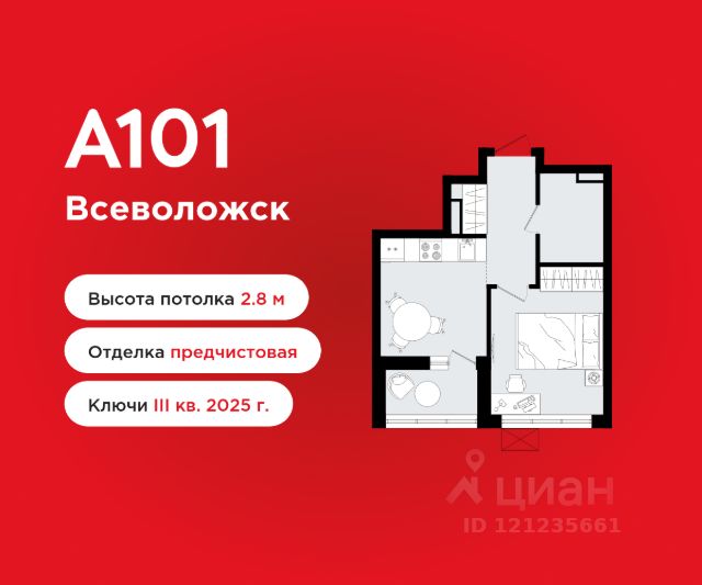 Студия площадью 20.60 в ЖК "А101 Всеволожск" c лоджией на 8 этаже. Квартира с предчистовой отделкой. Вид из окна во двор. В квартире 1 санузел. Высота потолков 2.80 м. ОТДЕЛКА Квартира с предчистовой отделкой предполагает: качественную стяжку на полах под финишное покрытие, потолок с обеспыливающей грунтовкой белого цвета, ровные стены с покрытием штукатурка. Выполнены все работы по проведению электрики. На все отделочные работы от застройщика предоставляется гарантия. Если вы хотите дозаказать дизайнерскую отделку, обращайтесь к нашими специалистами. ДВОРЫ И ОКРУЖЕНИЕ Большая часть территории комплекса отведена под зелёные благоустроенные зоны: теневые сады, уютные городские пространства с развитой тротуарной сетью и велодорожками - всё для вашего активного и здорового образа жизни. Внутренние дворы закрыты от посторонних и свободны от автомобилей. Каждый дом оснащён высокотехнологичными системами видеонаблюдения и контроля доступа, обеспечивая максимум безопасности и спокойствия для вас и ваших близких. Окружение района - живописный природный ландшафт. Всего в 5 минутах ходьбы располагается Ковалёвский лесопарк - источник кислорода, пространство для спорта, отдыха и приятных прогулок на свежем воздухе. ПАРАДНАЯ Мягкая мебель, живые растения и натуральные материалы в отделке формируют современный и уютный интерьер входной группы, радующий глаз и создающий приятную атмосферу для встреч с гостями. Для вашего удобства реализован безбарьерный вход, отвечающий требованиям доступной среды для всех жильцов, а также в каждой парадной имеется отдельное помещение для хранения колясок и велосипедов. ИНФРАСТРУКТУРА: В жилой застройке сохранена естественная среда благодаря разнообразию растительности, извилистым дорожкам и уличной мебели из натуральных материалов. Здесь находится насыщенная сеть экотроп протяжённостью более 10 км прямо у дома, а просторная площадь позволяет жителям приятно провести время, общаться с соседями и отдыхать. Также предусмотрены зоны для отдыха и специально оборудованные спортивные площадки для активного образа жизни на свежем воздухе. На территории района ГК "А101" создает современный учебно-образовательный кластер, В "А1О1 Всеволожск" предусмотрена современная школа на 1300 учеников и 2 детских сада Всё самое необходимое - рядом с вашим домом. Выпить утром кофе в уютном кафе или поужинать с друзьями, отвести детей на развивающие занятия или игровую площадку, купить продукты и товары первой необходимости. В проекте запланировано уникальное гастрономическое пространство, располагающееся на основном пешеходном бульваре жилого района. Территория дополнительно оборудована местами отдыха на свежем воздухе, а для ресторанов и кафе будет предусмотрена возможность организации летних веранд. ЗАСТРОЙЩИК: ГК "А101" - один из крупнейших застройщиков России. Каждая восьмая квартира, проданная в Москве, находится в районе, построенном компанией, что подчеркивает её значимость и успех на рынке недвижимости. Продается квартира в новостройке в Всеволожске.
