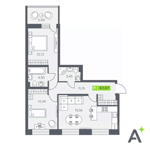 Продаётся 2-комнатная квартира в строящемся доме (Дом 1), срок сдачи: IV-кв. 2027, общей площадью 35.67 кв.м., на 2 этаже. Новый жилой комплекс "Аквилон RekaPark" от застройщика "Аквилон" расположен по адресу: Ленинградская область, Всеволожский район, Заневское городское поселение, деревня Новосергиевка