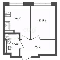 В продаже квартира площадью 35.05 кв. м без отделки на 2 этаже 16 этажного дома. Квартира находится в 4834 корпусе.