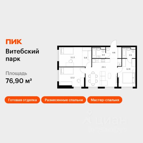 Продаётся 3-комн. квартира площадью 84,7 кв.м на 3 этаже 12 этажного дома (Корпус 6, Секция 1) проекта ПИК Витебский парк. Светлый просторный подъезд на уровне земли, функциональная планировка, большие окна, предчистовая отделка. Жилой квартал "Витебский парк" находится во Фрунзенском районе Санкт-Петербурга, в 15 минутах пешком от метро "Обводный канал". А в 2027 году всего в паре минут от проекта планируют открыть станцию метро "Боровая". В квартал входят 3 детских сада, школа и 7 жилых домов с дворами-парками, куда не могут зайти посторонние люди и заехать автомобили. Школа на 1250 мест и детский сад на 350 мест откроются одновременно с заселением первой очереди, это значит, что жители проекта смогут отдать своих детей в новые образовательные учреждения на территории квартала. Во дворах приятно отдыхать, знакомиться с соседями и даже заниматься йогой, а для детей мы построим детские площадки. Рядом появятся современные спортивные площадки. На первых этажах домов откроются магазины, кафе и другие сервисы. Через весь жилой район протянется широкий пешеходный бульвар для прогулок и спорта. Рядом с "Витебским парком" есть всё для комфортной жизни: магазины, торговые центры, фитнес-клубы, кафе и рестораны, а ещё детские сады, школы, вузы и поликлиника. Артикул 1005095 (Застройщик ООО "СЗ "Лиговский Сити") [cn_sbp_1813726] Продается квартира с отделкой от застройщика рядом с метро Бухарестская.
