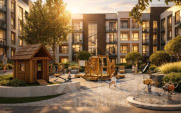 Территория квартала безбарьерная. В каждом дворе будет выполнено уникальное благоустройство по авторскому проекту с детскими и спортивными площадками, местами для отдыха и активностей. Концепция озеленения выстроена по принципу "живописный двор круглый год". Любителям активного образа жизни особенно понравятся эксплуатируемые кровли с зонами для йоги и солярия, откуда открывается невероятный вид на зеленый лес, раскинувшийся вокруг квартала.