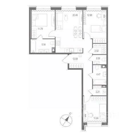 Продается квартира 79, по адресу г. Санкт-Петербург, Адмиралтейский район, набережная реки Пряжки участок 18 (севернее дома 7а, литера А), корпус Мариинка Deluxe в Мариинка Deluxe на 7 этаже, с площадью 119.5 м2.