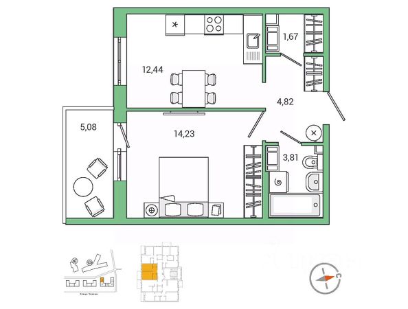 Продаётся 1 комнатная квартира 114 в ЖК IQ Гатчина, 5 оч., к. 2