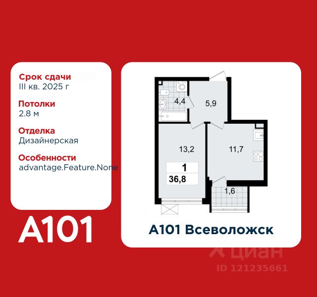1-комнатная квартира площадью 36.90 в ЖК "А101 Всеволожск" c лоджией на 10 этаже. Квартира с отделкой. Вид из окна во двор. В квартире 1 санузел. Высота потолков 2.95 м. Ключи в 2025 году. Предложения от застройщика на октябрь 2025: - Гибкая рассрочка 20 000 руб/мес. и первым взносом 10%. ОТДЕЛКА Для квартир с чистовой отделкой предлагается три варианта дизайна: Классика, Карелия светлая и Карелия темная. Варианты всех дизайнерских решений представлены на фотографиях. Подробности можно уточнить у менеджера. На все отделочные работы от застройщика предоставляется гарантия. ОСОБЕННОСТИ ПЛАНИРОВКИ ПАРАДНАЯ В каждой парадной предусмотрены места для хранения велосипедов и колясок, гостевой санузел, лапамойка (место для мытья домашних животных или колес велосипедов) и удобная зона ожидания для гостей. ДВОРЫ И ОКРУЖЕНИЕ Просторные дворы свободны от машин и закрыты от посторонних. Большую часть комплекса займут благоустроенные зелёные зоны, теневые сады и городские общественные пространства с развитой тротуарной сетью и велодорожками. Каждый дом оборудован системами видеонаблюдения и контроля доступа. Не хватает средств на покупку кладового помещения? Оформите ипотеку на квартиру и добавьте к ней часть стоимости кладовой. ЗАСТРОЙЩИК ГК "А101" - крупный инвестиционно-строительный холдинг, занимает 6-е место по объему строительства в России (по данным "Единого ресурса застройщиков" на 2023 год). НКР присвоило ГК "А101" кредитный рейтинг A+.ru, подтверждая его надежность и финансовую устойчивость для завершения строительства ЖК. Купить квартиру с отделкой в Всеволожске.