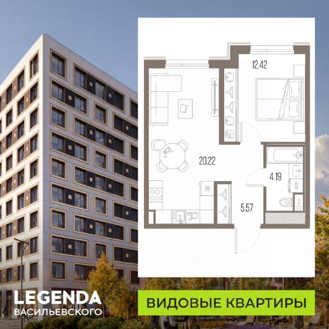 Просторная однокомнатная квартира-студия с предчистовой отделкой в ЖК "LEGENDA Васильевского" на 4 этаже. Общая площадь: 28.05 кв.м., площадь гостиной 20.21 кв.м., из которых 5 кв.м. выделено под кухонную зону. Все окна выходят на одну сторону. В квартире один совмещенный санузел. Высота потолков 2.72 м. "LEGENDA Васильевского" жилой квартал в минутной доступности от Финского залива, главного креативного хаба Санкт-Петербурга Севкабель Порта и других точек притяжения. Современные инженерные и технические решения, повышающие качество жизни TechnoBox включают в себя: стационарный и удаленный контроль дома, систему вентиляции Air Design - здоровое дыхание без лишнего шума, мультисервисную сеть, объединяющую коммуникационные системы, удаленное управление электроприборами, контроль отопления в каждом помещении, поддерживающий оптимальный температурный баланс во время "холодного" периода", датчики протечки, датчик открытия входной двери. Мультисервисная сеть (МСС) объединяет ключевые слаботочные системы дома, задавая им единый высокий стандарт работы, обеспечивая надёжность их функционирования и управления. Квартира готова к декорированию. Застройщиком сделана шумоизоляция; стены подготовлены для отделки; проведена электрика с учетом рекомендаций по расстановке мебели и бытовой техники; выровнен пол. В каждой квартире установлена взломостойкая входная дверь, окна со специальным термоизолированным алюминиевым профилем. Двор жилого комплекса "LEGENDA Васильевского" закрыт. Проект состоит из шести разноформатных корпусов с ритмичными фасадами в духе пост-конструктивизма. Геометрия жилого комплекса состоит из четко простроенных осей, чередующих открытые пространства и объемы корпусов, каждый из которых обладает своим визуальным кодом индивидуальным рисунком фасада и цветовой палитрой. Корпуса образуют периметр с общественными пространствами: площадью с кафе, магазинами и пешеходным променадом с детскими игровыми хабами, местами для спокойного отдыха и workout-зоной. Срок сдачи 4 квартал 2027 года. На территории комплекса предусмотрены теплый подземный паркинг и два наземных 4-х этажных паркинга.