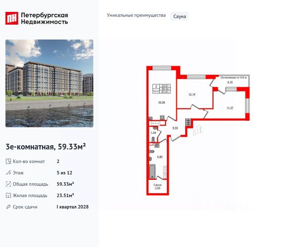 Продаётся студия в ЖК "Большая Охта" на 6 этаже. Общая площадь составляет 22.70 кв. м. Квартира с white box отделкой. Жилой комплекс "Большая Охта" располагается по адресу Санкт-Петербург, Красногвардейский. "ЛСР. Большая Охта" - проект бизнес-класса, в Красногвардейском районе между Якорной и Партизанской улицами, рядом с центром Петербурга. Престижный комплекс с удобной пешеходной и транспортной доступностью. Особенности квартиры высокие потолки и увеличенные окна. Горизонтальная разводка труб водоснабжения и отопления и вынесенные в холлы счетчики сохранят эстетичный дизайн комнат. Встроенные клапаны инфильтрации воздуха будут поддерживать чистоту и свежесть воздуха. Расположение: • 8 мин на авто до станции метро "Новочеркасская"; • 10 мин на авто до станции метро "Ладожская"; • 10 мин на авто до Таврического сада и исторического центра города; • 13 мин на авто до станции метро "Чернышевская"; • 25 мин на авто до КАД. Пространство внутри комплекса разделено на функциональные зоны: тематические, спортивные, уединенные. Все площадки окружают взрослые хвойные и лиственные деревья, подобранные с учетом роста, эстетики и сезонного цветения. Расширенная инфраструктура комплекса продумана до мелочей. Внутри квартала есть все необходимое для жизни с комфортом и удовольствием - детские сады и школы, магазины, площадки для спорта и отдыха, фитнес-залы, модные кофейни и общественные летние веранды. Преимущества: • Подземный паркинг и кладовые помещения; • Двор без машин; • Система "Умный дом" (в т.ч. управление домофоном со смартфона); • Пост охраны и консьерж; • Индивидуальный тепловой пункт; • Колясочные в каждой парадной; • Зарядка для электромобилей. Успейте приобрести квартиру на выгодных условиях! Чтобы узнать подробности, обращайтесь за консультацией по телефону. Купить квартиру с отделкой рядом с метро Новочеркасская.