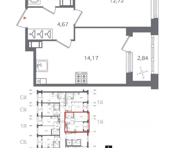 Квартира общей площадью 33 м² , расположена на 8 этаже 11этажного дома .