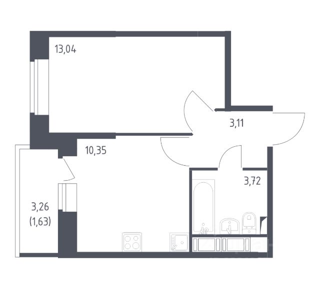 В продаже 1-комнатная квартира в корпусе 38 ЖК 'Новое Колпино'. Квартира располагается на 4 этаже, общая площадь 34.3 м2.