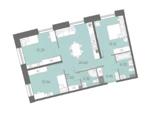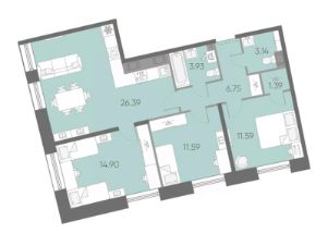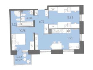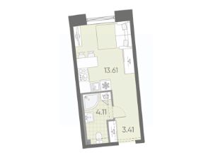 просторная кухня-гостиная 17,6 м² — сердце квартиры, где легко разместится обеденная зона, диван, медиа-зона;