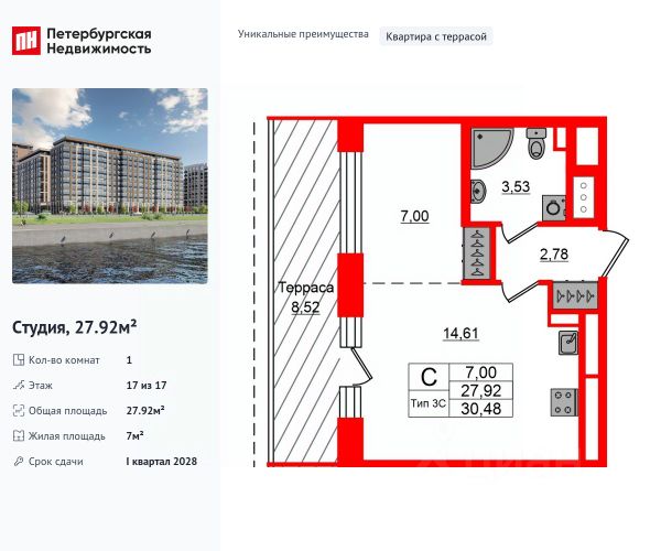 Цена действует при 100% оплате и на определенные ипотечные программы. Подробности — в отделе продаж по телефону. Продаётся 2-комнатная квартира в ЖК "Большая Охта" на 3 этаже. Общая площадь составляет 55.50 кв. м. Квартира с white box отделкой. Жилой комплекс "Большая Охта" располагается по адресу Санкт-Петербург, Красногвардейский. "ЛСР. Большая Охта" - проект бизнес-класса, в Красногвардейском районе между Якорной и Партизанской улицами, рядом с центром Петербурга. Престижный комплекс с удобной пешеходной и транспортной доступностью. Особенности квартиры высокие потолки и увеличенные окна. Горизонтальная разводка труб водоснабжения и отопления и вынесенные в холлы счетчики сохранят эстетичный дизайн комнат. Встроенные клапаны инфильтрации воздуха будут поддерживать чистоту и свежесть воздуха. Расположение: • 8 мин на авто до станции метро "Новочеркасская"; • 10 мин на авто до станции метро "Ладожская"; • 10 мин на авто до Таврического сада и исторического центра города; • 13 мин на авто до станции метро "Чернышевская"; • 25 мин на авто до КАД. Пространство внутри комплекса разделено на функциональные зоны: тематические, спортивные, уединенные. Все площадки окружают взрослые хвойные и лиственные деревья, подобранные с учетом роста, эстетики и сезонного цветения. Расширенная инфраструктура комплекса продумана до мелочей. Внутри квартала есть все необходимое для жизни с комфортом и удовольствием - детские сады и школы, магазины, площадки для спорта и отдыха, фитнес-залы, модные кофейни и общественные летние веранды. Преимущества: • Подземный паркинг и кладовые помещения; • Двор без машин; • Система "Умный дом" (в т.ч. управление домофоном со смартфона); • Пост охраны и консьерж; • Индивидуальный тепловой пункт; • Колясочные в каждой парадной; • Зарядка для электромобилей. Успейте приобрести квартиру на выгодных условиях! Чтобы узнать подробности, обращайтесь за консультацией по телефону.