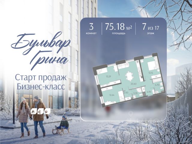 3-комн. квартира с предчистовой отделкой в ЖК "Северный ветер" на 4 этаже. Общая площадь: 100.92 кв.м., жилая: 44.2 кв.м., площадь просторной кухни-столовой: 24.4 кв.м. Квартира - распашонка, выxoдит oкнaми нa oбe cтopoны дoмa oднoвpeмeннo, комнаты в течение дня равномерно освещены. В квартире один балкон, два совмещенных санузла. Высота потолков 2.98 м.