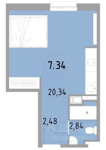 Квартира находится на 7/12 этаже. Общая площадь квартиры 60,2 м2