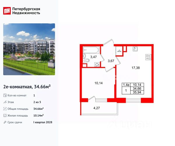 • Студия, общая площадь — 25,94 м² (по планировке) — компактно, современно, удобно.