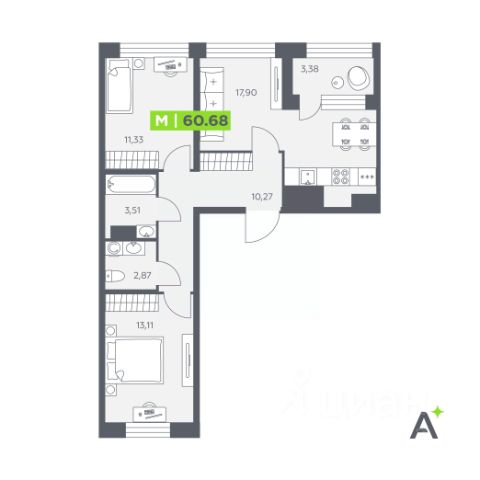 Дом монолитный, многоподъездный, переменной этажности, от 10 до 12 этажей. Квартира находится в 1-й секции высотой 12 этажей в корпусе 1. На этаже 6 квартир. В подъезде 1 пассажирский и 1 грузовой лифт. Окончание строительства - 3 квартал 2028 года. Оформление сделки по договору долевого участия.
