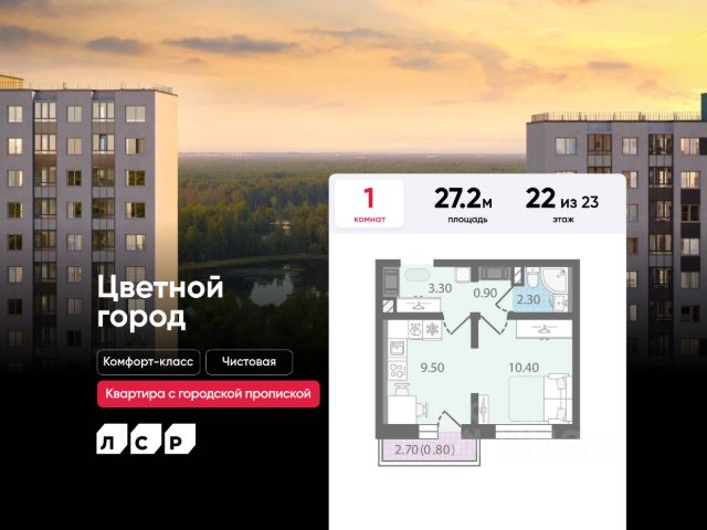 Продается студия в ЖК "Цветной город" на 2 этаже. Общая площадь составляет 22.70 кв. м. Квартира с чистовой отделкой Срок сдачи дома: 3 квартал 2026. Жилой комплекс "Цветной город" располагается по адресу Санкт-Петербург, Красногвардейский. "Цветной город" - современный масштабный эко-проект: жилые кварталы со своей сетью улиц, пешеходными бульварами и велодорожками, площадками для спорта и отдыха. Кварталы располагаются вдоль береговой линии реки Охты. "Цветной город" - это жизнь вблизи природы, но с городской пропиской. К 2026 году на берегах реки Охты будет создан Пейзажный парк с летними экотропами и зимними горками для тюбингов, скейт-парком и летним кинотеатром. В ЖК "Цветной город" запланировано и уже частично реализовано строительство 10 школ, 16 детских садов, 4 поликлиники, больница, ТРК, спортивно-оздоровительные сервисы С центром Петербурга жителей "Цветного города" свяжет Пискарёвский проспект, удобный выезд на КАД позволяет без труда добираться до других районов. Расположение: • 10 минут на авто до КАД; • 15 минут на авто до станций "Гражданский проспект" и "Академическая"; • 20 минут до ж/д станции "Ручьи".; Квартира сдается с готовой отделкой из современных экологичных материалов: на стенах плотные белые обои под покраску, на полу износостойкий матовый ламинат, в санузлах керамическая плитка на стенах и керамогранит на полу. Трубы отопления скрыты в стяжке пола и не мешают мебели. В квартире предусмотрено большое количество двойных розеток и выключателей. В ЖК "Цветной город" предусмотрена система "Умный дом": смартфон с приложением является ключом от всех дверей в ЖК, гостевой доступ оформляется в приложении, видеозвонки от домофона поступают в приложение, показания счетчиков автоматически передаются в учетные базы ЖКХ. Преимущества: • Рядом лесопарк и река Охта • Живописные виды из окон • Безбарьерная среда • Развитая социальная инфраструктура • Система "Умный дом" Успейте приобрести квартиру на выгодных условиях! Чтобы узнать подробности, обращайтесь за консультацией по телефону.