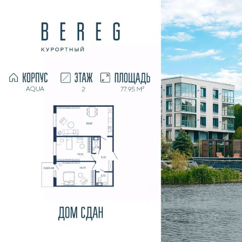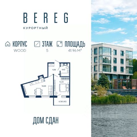 Апартамент 574 площадью 38,85 кв.м. в корпусе Wood с видом во двор Дом сдан!!! О проекте: "Bereg. Курортный" первый проект петербургского девелопера ELEMENT (ранее Element Development) в Санкт-Петербурге, который был сдан в мае 2024 года. Малоэтажный проект расположен в тихой части Сестрорецка, в окружении парков "Гагарка" и "Дубки", на берегу живописного канала. В составе комплекса три корпуса: AIR, AQUA и WOOD ("Воздух", "Вода" и "Дерево"), которые включают 715 апартаментов, в том числе юниты с террасами-патио на первом этаже. Комплекс обеспечен всей инфраструктурой для комфортной жизни от детского клуба до собственной спа-зоны с бассейном, сухой сауной и тренажерным залом. "Курортную" атмосферу поддерживают концепция "двор без машин", перголы для отдыха, детские площадки в стиле "эко", променад на набережной с "островками" для медитации, а также зеленое благоустройство от Derevo Park на 28 000 растений. "Bereg. Курортный" ("Берег Курортный") расположен в тихой части Сестрорецка, в окружении заповедного лесопарка "Гагарка". Напротив, проекта любимый петербуржцами парк "Дубки". Всего в 300 метрах от комплекса находится небольшой яхт-клуб, где можно оставить свой катер или небольшую яхту. Преимущества "Bereg. Курортный" ("Берег Курортный"): 3 корпуса; 5 этажей; Концепция "двор без машин"; Закрытая территория с системой контроля доступа; Своя инфраструктура: лобби, бассейн, коворкинг, детский клуб; Собственная благоустроенная набережная; 300 метров до Финского залива; Рядом расположен в лесопарке; Эко-тропа с выходом в лесопарк "Гагарка"; ELEMENT создаёт инновационные жилые и коммерческие объекты в Санкт-Петербурге и Москве, которые устанавливают новые стандарты эффективной жизни в мегаполисах. Продам квартиру в новостройке с отделкой в Сестрорецке.