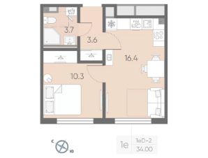 Продается квартира 723, по адресу г. Санкт-Петербург, поселок Шушары, Школьная улица, стр.1, корпус ЖК Монография в Монография на 6 этаже, с площадью 42.9 м2.
