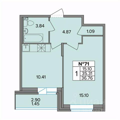 Продаётся 1-комнатная квартира в сданном доме (Ленсоветовский, 19к2 (Корпус 1)), срок сдачи: II-кв. 2025, общей площадью 33.91 кв.м., на 9 этаже. Жилой многоквартирный дом от застройщика "СЗ Смарт".