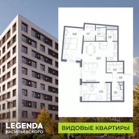 2-комн. квартира с предчистовой отделкой в ЖК "LEGENDA Васильевского" на 3 этаже. Общая площадь: 56.67 кв.м., жилая: 22.47 кв.м., площадь просторной кухни-столовой: 20.71 кв.м. Угловая квартира, окна oбecпeчивaют paвнoмepнoe ocвeщeниe в тeчeниe дня. В квартире один раздельный санузел. Высота потолков 2.72 м. "LEGENDA Васильевского" жилой квартал в минутной доступности от Финского залива, главного креативного хаба Санкт-Петербурга Севкабель Порта и других точек притяжения. Современные инженерные и технические решения, повышающие качество жизни TechnoBox включают в себя: стационарный и удаленный контроль дома, систему вентиляции Air Design - здоровое дыхание без лишнего шума, мультисервисную сеть, объединяющую коммуникационные системы, удаленное управление электроприборами, контроль отопления в каждом помещении, поддерживающий оптимальный температурный баланс во время "холодного" периода", датчики протечки, датчик открытия входной двери. Мультисервисная сеть (МСС) объединяет ключевые слаботочные системы дома, задавая им единый высокий стандарт работы, обеспечивая надёжность их функционирования и управления. Квартира готова к декорированию. Застройщиком сделана шумоизоляция; стены подготовлены для отделки; проведена электрика с учетом рекомендаций по расстановке мебели и бытовой техники; выровнен пол. В каждой квартире установлена взломостойкая входная дверь, окна со специальным термоизолированным алюминиевым профилем. Двор жилого комплекса "LEGENDA Васильевского" закрыт. Проект состоит из шести разноформатных корпусов с ритмичными фасадами в духе пост-конструктивизма. Геометрия жилого комплекса состоит из четко простроенных осей, чередующих открытые пространства и объемы корпусов, каждый из которых обладает своим визуальным кодом индивидуальным рисунком фасада и цветовой палитрой. Корпуса образуют периметр с общественными пространствами: площадью с кафе, магазинами и пешеходным променадом с детскими игровыми хабами, местами для спокойного отдыха и workout-зоной. Срок сдачи 4 квартал 2027 года. На территории комплекса предусмотрены теплый подземный паркинг и два наземных 4-х этажных паркинга. Купить квартиру в новостройке с отделкой в районе Василеостровский в Санкт-Петербурге.