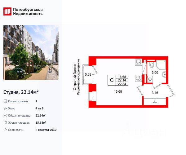 Продается уютная студия от застройщика в жилом комплексе "Аристократ" в уютном Василеостровском районе. До метро можно добраться пешком всего за 10 минут. Удобная, классическая, функциональная европланировка, просторная прихожая 3.46 м². Общая площадь студии - 22.14 м², жилая 15.68 м², высота потолка 2.7 м. Квартира продается с отделкой "NORD LINE BUSINESS". Что особенного в ЖК "Аристократ"? • Васильевский остров - историческая локация с современными культурными кластерами • Индивидуальный облик каждого корпуса в единой архитектурной концепции • 7 парадных лобби с потолками до 7-ми метров • Цветущие сады, зеленые гостиные, фонтаны • Клуб резидентов "Аристократ": фитнес-клуб, коворкинг, гостиная с роялем, детский центр с кинотеатром • Технологичная среда на территории, в доме и в квартире • Премиальная отделка квартир - Nord line business