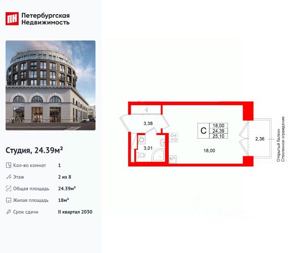 • ✅ Минимальная площадь: 24,1 м²