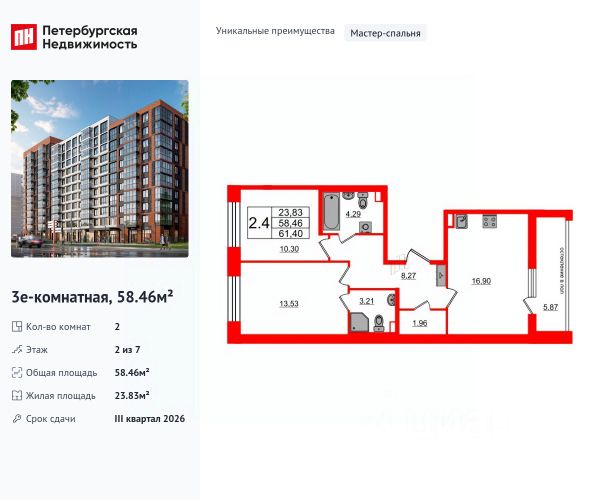 Квартира находится на 11 этаже. Общая площадь квартиры 49,99 м2. Функциональная кухня-гостиная 16,31 м2, спальня 11,25 м2 с лоджией 3,64 м2. Комната 10,33 м2. Коридор с местом под шкаф 5,58 м2. Раздельный сан. узел 3,51 м2 + 2,72 м2.