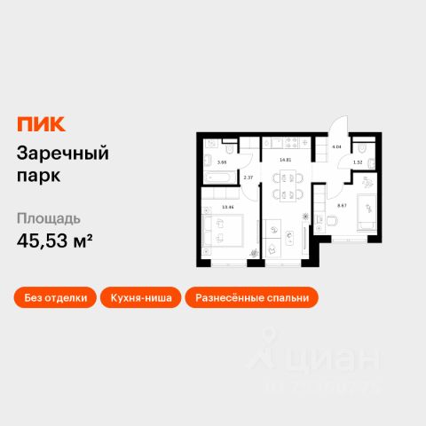 Продаётся 1-комн. квартира площадью 41,09 кв.м на 6 этаже 24 этажного дома (Корпус 4, Секция 6) проекта ПИК Заречный парк. Светлый просторный подъезд на уровне земли, функциональная планировка, большие окна, без отделки. Жилой квартал "Заречный парк" расположен в районе Новое Девяткино Ленинградской области. В 7 минутах на автомобиле - станция метро "Девяткино", до КАД - 10 минут на машине. В 2026 году будет достроена шестиполосная трасса в обход Мурино, примыкающая к Пискарёвскому проспекту. Она станет дополнительным выездом на КАД для жителей "Заречного парка". Проект включает восемь домов высотой от 15 до 24 этажей, три многоуровневых паркинга, детский сад и школу. В зелёных дворах-парках будут оборудованы современные детские и спортивные площадки, обустроены места для отдыха. На первых этажах разместятся магазины, кафе и другие сервисы. Планировки продуманы так, чтобы каждый квадратный метр жилой площади можно было эффективно использовать. Все квартиры сдаются с готовой отделкой. Артикул 1060625 (Застройщик ООО "СПЕЦИАЛИЗИРОВАННЫЙ ЗАСТРОЙЩИК ИНВЕСТАЛЬЯНС") [cn_sbp_1848862]