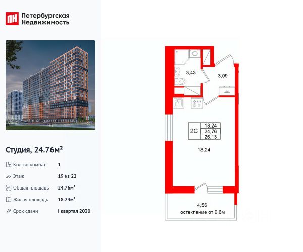 Продается просторная студия от застройщика в жилом комплексе "Город звезд" в новом городе на правом берегу Невы. До метро можно добраться на транспорте всего за 13 минут. Удобная, классическая, функциональная европланировка, вместительная прихожая 3.09 м². Общая площадь студии - 24.76 м², жилая 18.24 м², высота потолка 2.77 м. Квартира продается с отделкой "Норд Лайн светлый". Что особенного в ЖК "Город звезд"? • Инновационный Лицей Setl с оригинальной архитектурной концепцией и уникальной образовательной средой • Невский лесопарк под окнами - всегда свежий воздух и полноценный отдых на природе • Четыре тематические площади отдыха с разнообразным благоустройством • Аллея Звёзд - променад протяженностью 5 км с ландшафтным озеленением, зонами отдыха и велодорожкой • Выход на набережную реки Утки, где можно порыбачить или взять напрокат лодку • Единая входная группа с ресепшен и подземный паркинг
