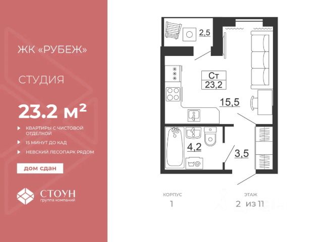 развитая социальная инфраструктура: 3 школы в Коммунаре, строящийся детский сад (срок сдачи не позднее августа 2026 г.), аптеки, супермаркет, пункты выдачи Ozon и Wildberries, пекарня-кондитерская, автосервис и мойка, салон красоты.