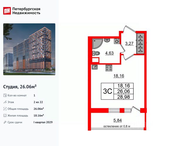 • ✅ Минимальная площадь: 21,9 м²