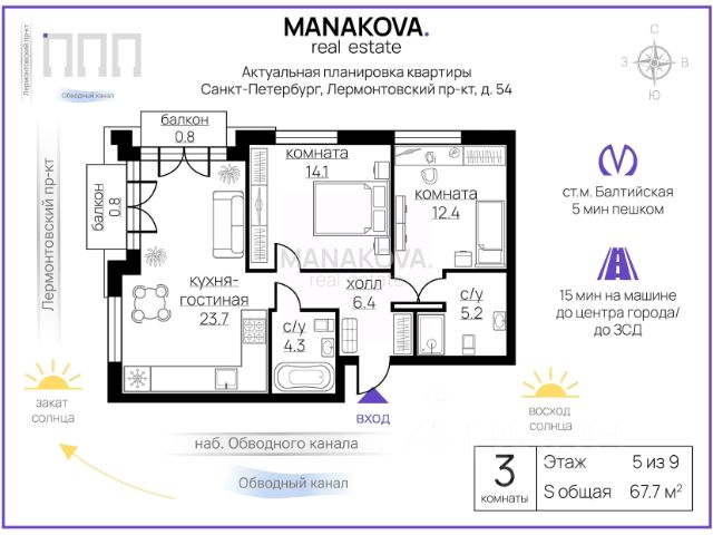 Продаётся 2-комн. квартира площадью 72,8 кв.м на 2 этаже 9 этажного дома (Корпус 2.2, Секция 13) проекта ПИК Лермонтовский 54. Светлый просторный подъезд на уровне земли, функциональная планировка, большие окна, без отделки. "Лермонтовский 54" находится в центре Санкт-Петербурга на набережной Обводного канала, в 5 минутах пешком от метро "Балтийская". Здесь будут квартиры с окнами в пол, высокими потолками и террасами. Жилой квартал находится в центре Санкт-Петербурга, в Адмиралтейском районе, на набережной Обводного канала. В 5 минутах пешком - станция метро "Балтийская". До Невского проспекта на автомобиле ехать 8 минут, до Московского проспекта - всего 2 минуты. Необычные фасады "Лермонтовского 54" напоминают о промышленной архитектуре, которая была популярна в Санкт-Петербурге в конце XIX и начале XX века. Материал отделки - прочный кирпич, который прослужит до 100 лет. А благодаря системе чиллер-фанкойл на фасадах не будет блоков кондиционеров - всё охлаждение происходит внутри здания. В "Лермонтовском" возводятся дома высотой от 7 до 9 этажей с небольшим количеством квартир: на этаже может быть всего две квартиры. Во дворах будут закрытые парки с детскими площадками и местами для отдыха, а на подземном этаже - паркинг с удобной навигацией. Между домами протянется пешеходный бульвар для прогулок и отдыха, для велосипедистов предусмотрены специальные дорожки и парковки. В 2024 году в "Лермонтовском 54" открылся лицей на 1000 мест. Он разместился в здании 1824 года - раньше здесь было Николаевское кавалерийское училище. Во всех квартирах будут трёхметровые потолки и окна в пол. На первых этажах откроются магазины, кафе и другие сервисы. Со стороны набережной в домах, которые признаны объектами культурного наследия, мы разместим общественные пространства. Недалеко от "Лермонтовского 54" находится Юсуповский дворец, парк Екатерингоф, на машине можно доехать до острова Новая Голландия и Мариинского театра. Рядом работают школы, детские сады, торговые центры и гипермаркеты. Артикул 921639 (Застройщик ООО "СПЕЦИАЛИЗИРОВАННЫЙ ЗАСТРОЙЩИК "АЛЬМАНДИН") [cn_sbp_1836903]