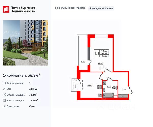 -Общая площадь 34.55 м.кв., приведённая вместе с балконом 36,36 м.кв.