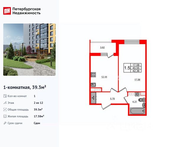 Арт. 117695115 Предлагается к продаже по переуступке 1- кoмнатная квартирa (евро-двушка, 2Е) в кирпично-монолитном доме в жилом комплексе комфорт-класса ПРАЙМ ПРИМОРСКИЙ.