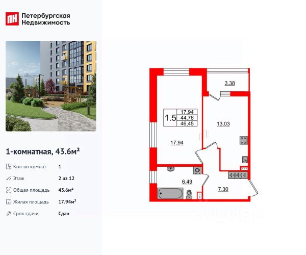 -Квартира сдаётся с полной чистовой отделкой Nord Line Silver от застройщика. Полный комплект качественного сантехнического оборудования, акриловая ванна, раковина с тумбой и смесителем, напольное кварц-виниловое покрытие, натяжные потолки, керамогранит на балконе, обои в светлых тонах с покраской, межкомнатные двери-МДФ, входная металлическая дверь.
