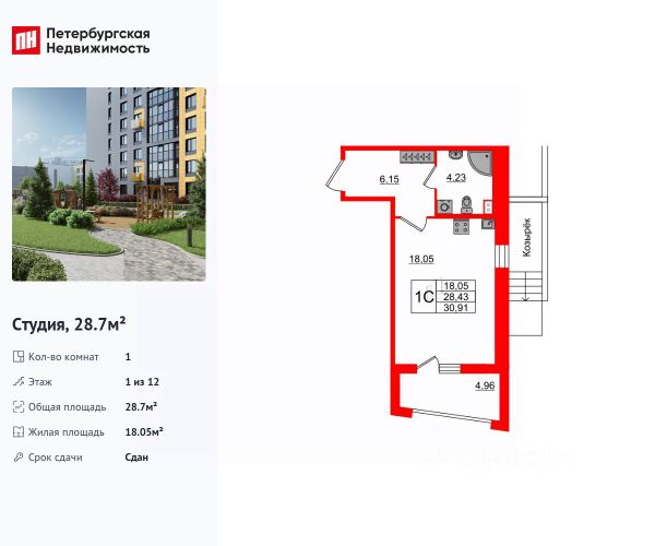 -Просторная кухня-гостинная-15.14 м.кв. с выходом на застеклённую лоджию - 3.62 м.кв. Уютная комната - 11.74 м.кв. Площадь прихожей 4.23 м.кв.