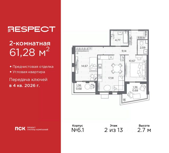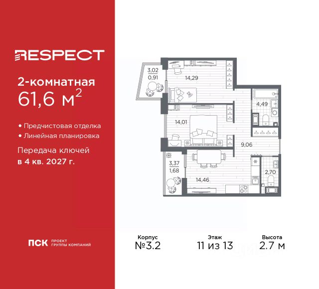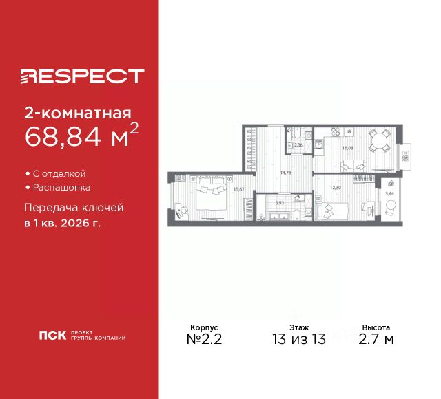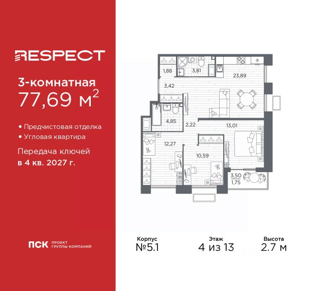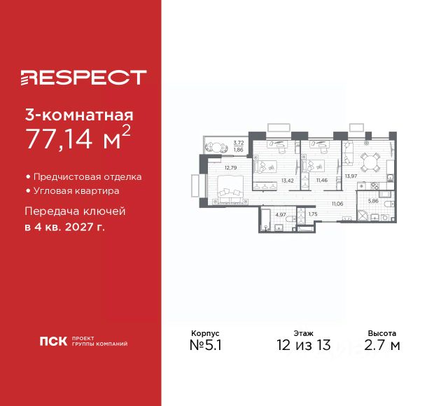 Просторная трехкомнатная квартира с предчистовой отделкой в ЖК "RESPECT" на 5 этаже. Общая площадь: 76.55 кв.м., жилая: 34.01 кв.м., площадь просторной кухни-столовой: 18.59 кв.м. Комнаты изолированные, все окна выходят на одну сторону. В квартире одна лоджия, два совмещенных санузла. Высота потолков 2.7 м. Квартира находится в корпусе 1. Дом монолитный, одноподъездный, высотой 13 этажей. На этаже 6 квартир. В подъезде 1 пассажирский и 1 грузовой лифт. Окончание строительства - 1 квартал 2026 года. Оформление сделки по договору долевого участия. В шаговой доступности от жилого комплекса расположены станции метро (расстояние по прямой): "Лесная" (800 м), "Площадь Мужества" (1.4 км), "Выборгская" (1.9 км), также недалеко от этого корпуса находятся станции метро: "Академическая", "Политехническая". Жилой квартал "RESPECT" строится на Полюстровском пр, 87, в одной из самых востребованных локаций Петербурга. В 10 минутах пешком - метро "Лесная" и в 10 минутах на транспорте - Петроградская сторона. Высота домов от 7 до 13 этажей. Квартиры сдаются с отделкой white box и с чистовой отделкой. На территории Respect строится школа на 1125 учащихся и детский сад на 240 мест. Запроектированы собственная газовая котельная, закрытая территория, дворы без машин и подземные паркинги с лифтами. В проекте предусмотрены трапециевидные балконы или остекленные лоджии, которые, с одной стороны, исключают монотонность фасада, являясь декоративными элементами, с другой дополнительным функциональным пространством в квартирах. Цветовая гармония фасадов каждого дома раскрывает характер квартала. Коричневый цвет клинкерного кирпича со структурой водяных штрихов — цвет уюта и безопасности, сдержанности и надёжности. Вентилируемые фасады облицованы клинкерным кирпичом. Его высокая прочность позволяет давать 100 лет гарантии на этот материал. Водопоглощение клинкерного кирпича составляет менее 5%, за счет чего у него высокая теплопроводность и прочность. В квартале запроектированы внутренние закрытые территории дворов домов без доступа автомобилей и безбарьерная среда для велосипедистов и колясок. Предусмотрены IP-домофония с функцией дистанционного открывания калиток и парадных, а также дистанционный сбор показаний счетчиков и мобильное приложение для жителей. Для безопасности жителей квартала - круглосуточное видеонаблюдение и служба охраны. В каждой квартире предусмотрены внешние корзины для кондиционеров. Вся территория квартала будет связана единой концепцией благоустройства, разработанной ландшафтным бюро L.BURO. На эксплуатируемой кровле на уровне первого этажа в домах 1 и 4 будут обустроены общественные видовые террасы. Это станет не только привлекательным местом с красивым видом, но и удобным, многофункциональным пространством. Дизайн парадных зон и входных групп - сочетание лаконичности отделки и декоративных элементов с текстурами из натурального камня и дерева с приглушенной подсветкой теплым светом. Во входных группах расположены гостевые зо Продается квартира в новостройке в округе Пискарёвка в Санкт-Петербурге.