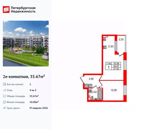 Продается однокомнатная квартира-студия с отделкой в ЖК "PLUS Пулковский" на 5 этаже. Общая площадь: 24.64 кв.м., площадь гостиной 16.37 кв.м., из которых 5 кв.м. выделено под кухонную зону. Все окна выходят на одну сторону. В квартире один балкон, один совмещенный санузел. Высота потолков 2.75 м. Дом монолитный, многоподъездный, высотой 5 этажей. Квартира находится в 3-й секции в корпусе 1. На этаже 9 квартир. В подъезде 1 грузовой лифт. Начало строительства - 4 квартал 2023 года. В настоящее время строительство завершено, дом сдан в 4 квартале 2025 года. Оформление сделки по договору купли-продажи. Уютный пятиэтажный city квартал PLUS Пулковский расположен в престижном Московском районе на пересечении Пулковского и Волхонского шоссе в новом формирующемся микрорайоне. Рядом проходит одна из важнейших транспортных артерий города Пулковское шоссе, а в 10 минутах езды два въезда на КАД и въезд на ЗСД. Благодаря удобному и быстрому выезду на Пулковское шоссе, можно легко добраться до центра города за 35 мин. До станций метро "Московская" и "Купчино" - 15 мин. на машине, а до аэропорта Пулково - 17 мин. В составе квартала: 30 пятиэтажных домов, школа со спортивным стадионом, 2 детских сада с бассейнами, наземные и подземные паркинги, центральный зеленый бульвар с play hub и местами отдыха. Благоустройство квартала продумано до мельчайших деталей, в его основе - забота о качестве жизни каждого жителя. Дома возводятся по современной монолитной технологии строительства с вентилируемыми фасадами. Благодаря большим увеличенным окнам и отсутствию высокоэтажных домов, во всех квартирах максимальный объем естественного света. В составе квартала запланированы социально-значимые объекты: школа на 825 мест со спортивным стадионом и бассейнами, два детских сада с бассейнами на 220 мест каждый. Территория квартала зонирована таким образом, чтобы автомобильные и пешеходные потоки и не пересекались. Прогулочные и велосипедные дорожки отделены от автомобильных проездов зелеными насаждениями. Дворы закрыты для машин, что дает чувство дополнительной безопасности для жителей особенно, для самых маленьких. Вся территория квартала безбарьерная. Здесь нет пандусов, резких перепадов высот или неудобных ступеней. Вход в парадные с уровня земли. В каждом дворе есть своя оборудованная детская площадка. А в центре микрорайона расположится большая игровая площадка play hub с пространством для командных игр. PLUS Пулковский располагается в молодом микрорайоне, который сейчас находится в стадии активного развития. Он будет обладать собственной развитой инфраструктурой. В радиусе 15 минут езды на автомобиле располагаются многочисленные магазины, супермаркеты, спортивные, образовательные и медицинские учреждения, парки и достопримечательности. Для автомашин предусмотрены отдельно стоящий 5-ти этажный паркинг на 958 машино-мест, две подземные парковки на 367 машино-мест и наземные парковочные зоны по внешнему периметру микрорайона. #zMBDuD Продается квартира в новостройке в округе Пулковский меридиан в Санкт-Петербурге.