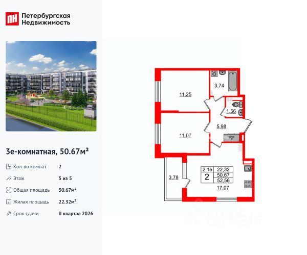 Дом монолитный, трехподъездный, высотой 5 этажей. Квартира находится во 2-й секции в корпусе 13. На этаже 7 квартир. В подъезде 1 грузовой лифт. Начало строительства - 1 квартал 2026 года. Окончание строительства - 2 квартал 2027 года. Оформление сделки по договору долевого участия.