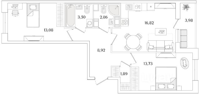 Квартира большая удобной функциональной планировки с гардеробной! Подойдёт как для семейной пары, так и для одного человека.
