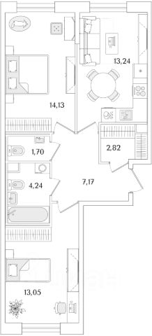 • Санузел: 4,17 кв.м.
