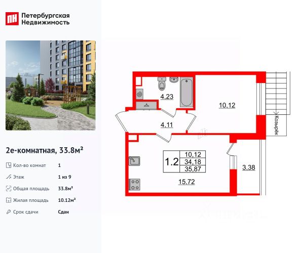 Дом монолитный, двухподъездный, высотой 10 этажей. Квартира находится во 2-й секции в корпусе 2. В подъезде 1 грузовой лифт. Начало строительства - 4 квартал 2019 года. В настоящее время строительство окончено, дом сдан в 3 квартале 2023 года. Оформление сделки по договору купли-продажи.