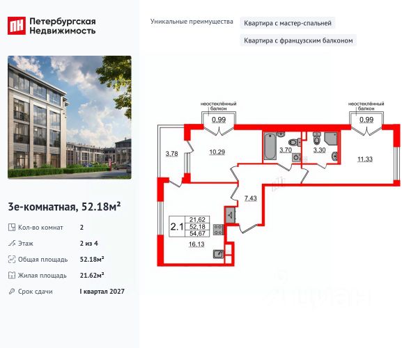 Просторная 3-комн. квартира в ЖК "VEREN VILLAGE Стрельна" на 3 этаже. Квартира без отделки, полностью готова к чистовой отделке и дальнейшему ремонту. Общая площадь: 99.4 кв.м., жилая: 39.25 кв.м., площадь просторной куxни-гостиной: 32.17 кв.м. Квартира угловая, очень светлая, естественная вентиляция при открытии окон. В квартире два балкона, два совмещенных санузла. Высота потолков 2.8 м.