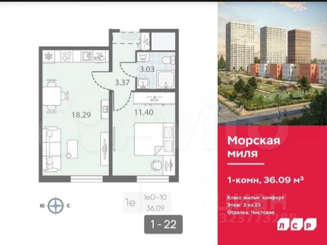 Продается 1-комнатная квартира в ЖК "Морская миля" на 19 этаже. Общая площадь составляет 34.30 кв. м. Квартира с чистовой отделкой. Жилой комплекс "Морская миля" располагается по адресу Санкт-Петербург, Красносельский. Морская миля - жилой комплекс в Красносельском районе Санкт-Петербурга. Расположение комплекса - его главное преимущество: близость к таким историческим памятникам и местам, как Петергоф, Павловский дворец и Царское село позволяет в любой момент насладиться красотами культурной столицы России. Расположение: - всего 350 м до новой станции метро "Юго-Западная"; - 20 минут до Петергофа на автомобиле; - 20 минут до аэропорта "Пулково" на автомобиле; - 30 минут до Царского села на автомобиле. Между корпусами расположены спортивные и детские площадки, пешеходный бульвар. В квартире выполнена полная отделка "Comfort Wood" из качественных материалов: прочный ламинат цвета благородного дуба, фактурные белые обои, керамическая плитка в ванной. Вход в парадные расположен на уровне земли и создает доступную среду для пожилых людей, людей с ограниченными возможностями и мам с колясками. На этажах и в подвале есть кладовые, которые позволят освободить пространство квартиры от лишних вещей. Первые этажи отведены под магазины и колясочные. На территории комплекса находятся наземные паркинги, гостевые парковки, детский сад, школа. В пешей доступности расположены магазины, кафе, аптеки и прочие удобства, необходимые для спокойной и комфортной жизни. Во дворах устроены пешеходные зоны, дворы озеленены и благоустроены: имеются тенистые аллеи, уютные зоны для отдыха детей и взрослых, а также стильные плей-хабы. Преимущества: - Станция метро в пешей доступности - Пешеходный бульвар - Близость к памятникам культуры и архитектуры - Школа и детский сад во дворе - Доступная среда Успейте приобрести квартиру на выгодных условиях! Чтобы узнать подробности, обращайтесь за консультацией по телефону.