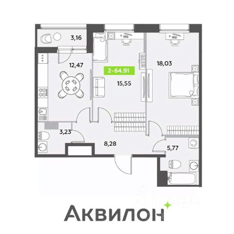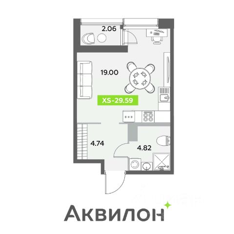 Предлагаем квартиру формата 2 Евро, кухня гостиная и спальня!