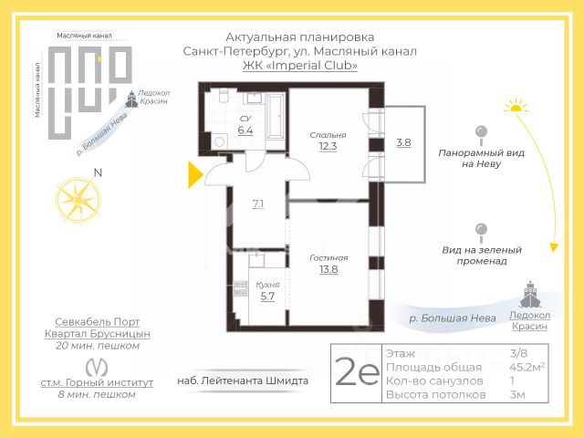 Просторная 4-комн. квартира с предчистовой отделкой в ЖК "Северный ветер" на 7 этаже. 2-уровневая квартира, на каждом этаже вы можете выделить различные функциональные зоны. Общая площадь: 172.33 кв.м., жилая: 73.3 кв.м., площадь просторной кухни-столовой: 27.9 кв.м. Квартира - распашонка, без проходных комнат, окна выходят на paзные стороны дома. В квартире два балкона, три совмещенных санузла. Наличие в квартире террасы открывает возможность для обустройства дополнительной площади. Высота потолков 3.1 м.