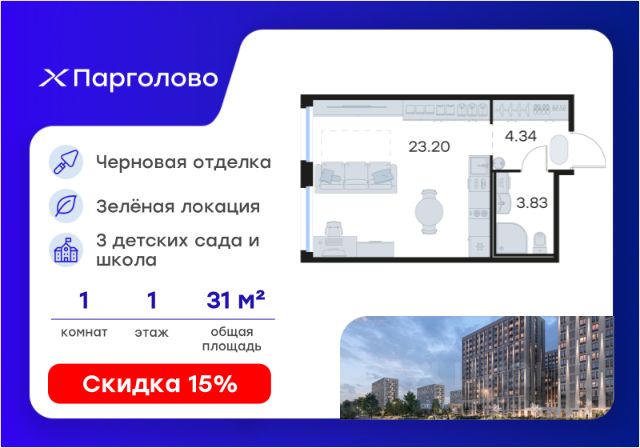 ЖК Loft у Озера/ Дома введены в эксплуатацию в 2024г. Приз Зрительских Симпатий и Дипломы "Honourable Mention" жюри международной архитектурной премии "GOLDEN TREZZINI - 2024" в номинации "Лучшее капитальное строение Санкт-Петербурга". Местоположение: Санкт-Петербург, Выборгский район, тер. Шувалово-Озерки Загород в Городе / В окружении парков и озёр / Инфраструктура есть Пешая доступность: / Автоб. ост. -9 мин / Магазин - 6 мин/ Дет. сад - 7 мин. Кубный ЖК / Мало квартир в доме / Приватная территория Стиль Лофт / Тёмный сканди / Кирпич ручной формовки Бизнес класс/ Современные решения / Добротные дома Панорамные окна / Черные алюминиевые стеклопакеты Балконы и Террасы / Площадь от 8м2 / В каждой квартире Патио / Кладовые / Подземный паркинг Мульти - Двор / Во дворе как на даче / Место для спорта, отдыха, работы и общения Отделка черновая/ Тёплый пол в стяжке / Внутрипольные конвекторы Усиленная звукоизоляция межэтажных перекрытий / Стены 46 см. Качественные двери в квартиру / Вентиляционные КИВы Квартира: 1 ккв / 2эт / H 2.85 м Площадь 43,5 м2 / Кухня 11,5м2 / 2 Санузла / Кладовка 1,5 м2 Балкон 8,1 м2 / Холодное безрамное остекление / Окна на юг Продажа от застройщика. Льготная семейная ипотека возможна. Продается квартира в новостройке в районе Выборгский в Санкт-Петербурге.