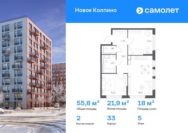 Строим кварталы для жизни с заботой о будущем. Предлагается квартира студия комфорт-класса 21,83 кв.м в корпусе 33 на 5 этаже, в ЖК "Новое Колпино" Квартира без отделки. Доступность опции "отделка" и возможность комплектации мебелью и декором уточняйте у застройщика. Приобрести квартиру возможно по специальным акциям от застройщика, с текущими условиями акций можно ознакомиться в блоке "Акций". Цена динамическая и может отличаться, уточняйте актуальность у застройщика. Квартал "Новое Колпино" — современный квартал в тихом и зеленом районе Санкт-Петербурга. Здесь можно подолгу любоваться пышными кронами деревьев, подставляя лицо теплым лучам солнца. А еще в любой момент можно сесть в машину и уже через час оказаться в сердце Северной столицы. Будет легко планировать поездки: до центра Петербурга, или площади Восстания, — 25 минут на поезде. С территории квартала удобно выезжать на крупные магистрали: путь до Южного шоссе займет 15 минут на авто, а до Петрозаводского шоссе — всего 6 минут. В 20 минутах на авто находится метро "Рыбацкое", а в 7 минутах — ж/д станция Колпино. Проводите выходные на природе в Колпинском парке, который находится недалеко от квартала, на берегу реки Ижоры. Летом здесь можно вместе с детьми веселиться на аттракционах, кататься на лодке, играть в бадминтон или волейбол. А еще можно захватить орехов и покормить белок. Всего 7 минут на авто или автобусе — и вы в центре города Колпино. Взрослых впечатлит русская архитектура старинных церквей, а детям понравится забавный памятник героям мультфильма "Трое из Простоквашино". В "Новом Колпино" будут работать 4 детских сада, 3 из них уже готовы встречать малышей. Ребята постарше могут ходить на занятия в школу с собственным бассейном, в проекте уже работает новая современная школа с бассейном Корпуса высотой 11 этажей с французскими и панорамными балконами отделаны штукатуркой и облицовочным кирпичом. Вдохновение для палитры нам подарили оттенки рассветного неба: терракотовый, персиковый, песочный. Во дворе найдется интересное занятие для всех жителей квартала. Взрослые смогут устраивать тренировки на свежем воздухе в спортивных зонах, дети будут целый день веселиться на игровых площадках. А еще мы позаботились о вашей безопасности и закрыли дворы от машин. Возвращайтесь домой с чемоданом из путешествия или коляской из парка. На пути в подъезд вы не встретите ступенек. Оставить транспорт можно будет в специальном помещении на первом этаже. По желанию вы сможете получить ключи от квартиры с готовой отделкой. Мы положим ламинат, поклеим обои, установим мебель и сантехнику. Доступен вариант с готовой кухней — бежевые тона отделки станут фоном для интерьера мечты. Чтобы сразу отпраздновать новоселье, закажите у нас декор и мебельные сеты. А если хочется воплотить собственные идеи в интерьере, присмотритесь к опции — без отделки. Купить квартиру от застройщика на старте продаж в жилом комплексе в Колпино.